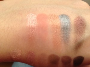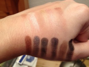 Bilan : je suis enchantée ! les fards ont vraiment une belle pigmentation, et ma préférence va vers la Storm, donc les couleurs métalisées m’enchantent !! par contre, légère déception pour la palette Au Naturel que je trouve moins pigmentée que les autres, c’est surement dû également au fait que les fards sont en grande partie mates. je n’ai fait d’ailleurs les swatch que pour les 3 couleurs irisées de la palette, les autres n’étant pas tellement visibles après application 😦